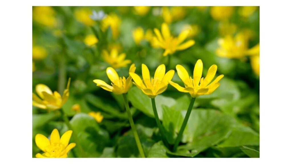 • Ziarnopłon wiosenny (Ficaria verna) jest jedną z pierwszych roślin kwitnących w sezonie.